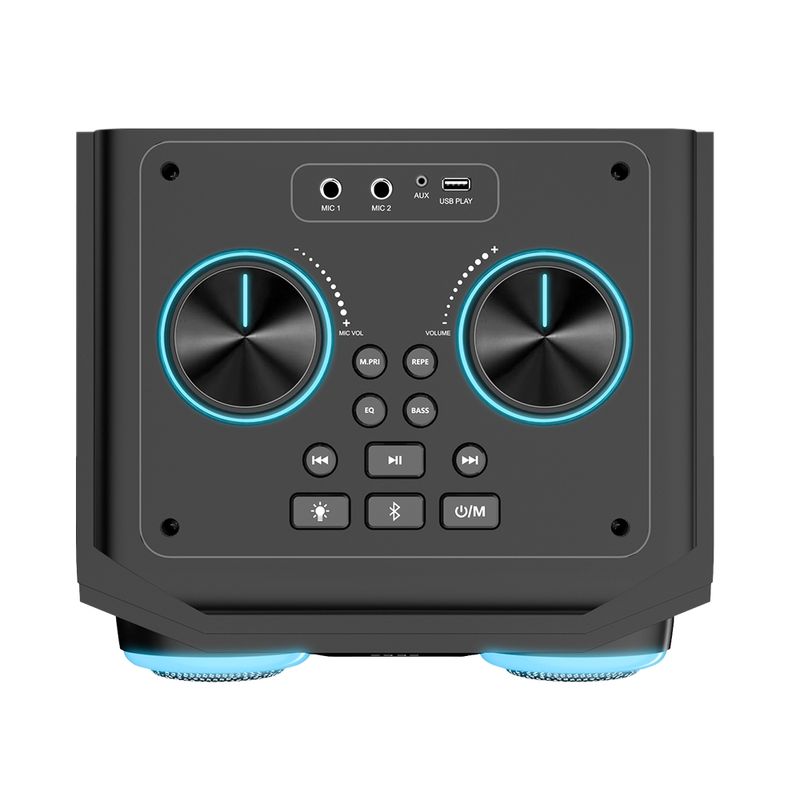 - Dois alto-falantes de 10” que garantem graves fortes e qualidade de som superior
