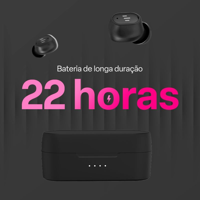 bateria de longa duração proporciona até 22 horas de autonomia total, combinando os fones e o estojo carregador — ideal para acompanhar seu ritmo em treinos, viagens ou no dia a dia. Já o recurso Pulse Extreme Bass reforça as frequências graves, trazendo impacto e profundidade ao som, sem perder a nitidez dos médios e agudos.